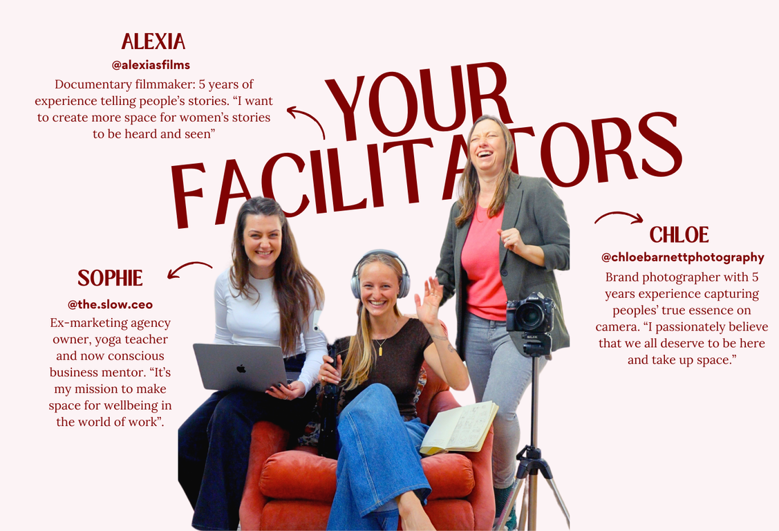 We'll open the space with a grounding opening circle, move our bodies, refine our stories and content plans and then it's time for headshots, your interview and creating self-shot content throughout the day. A delicious communal lunch will bring us together and we'll close the space with a closing circle.